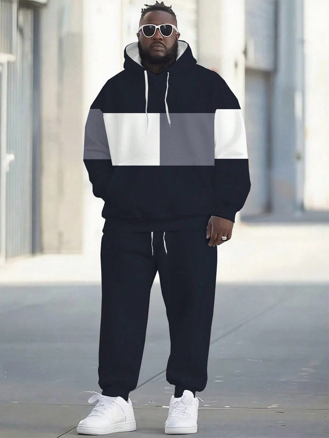طقم هوديي وبنطلون رجالي مقاس كبير مطبوع رقميًا ثلاثي الأبعاد مع جيب، طقم هوديي، ملابس خريفية