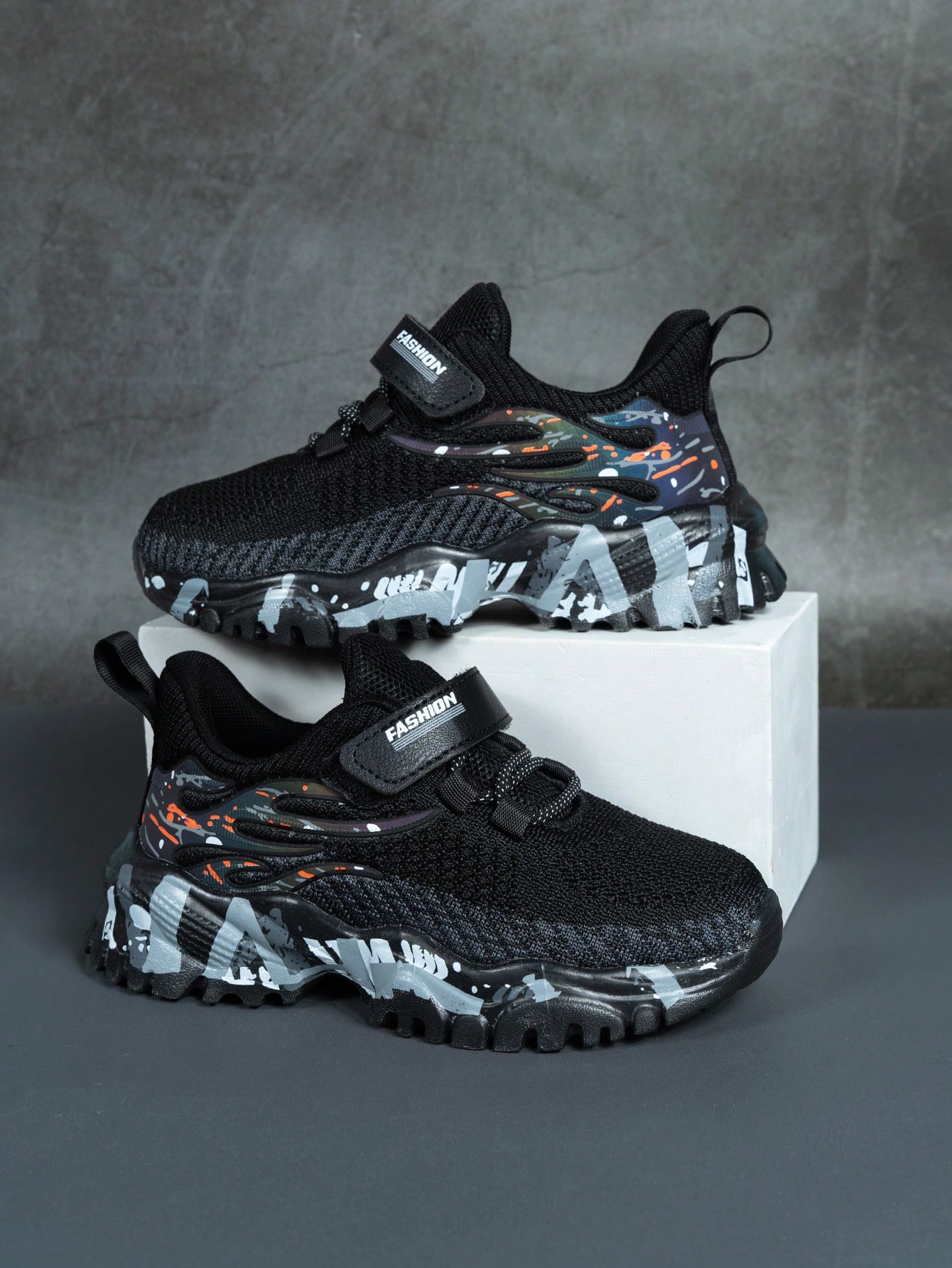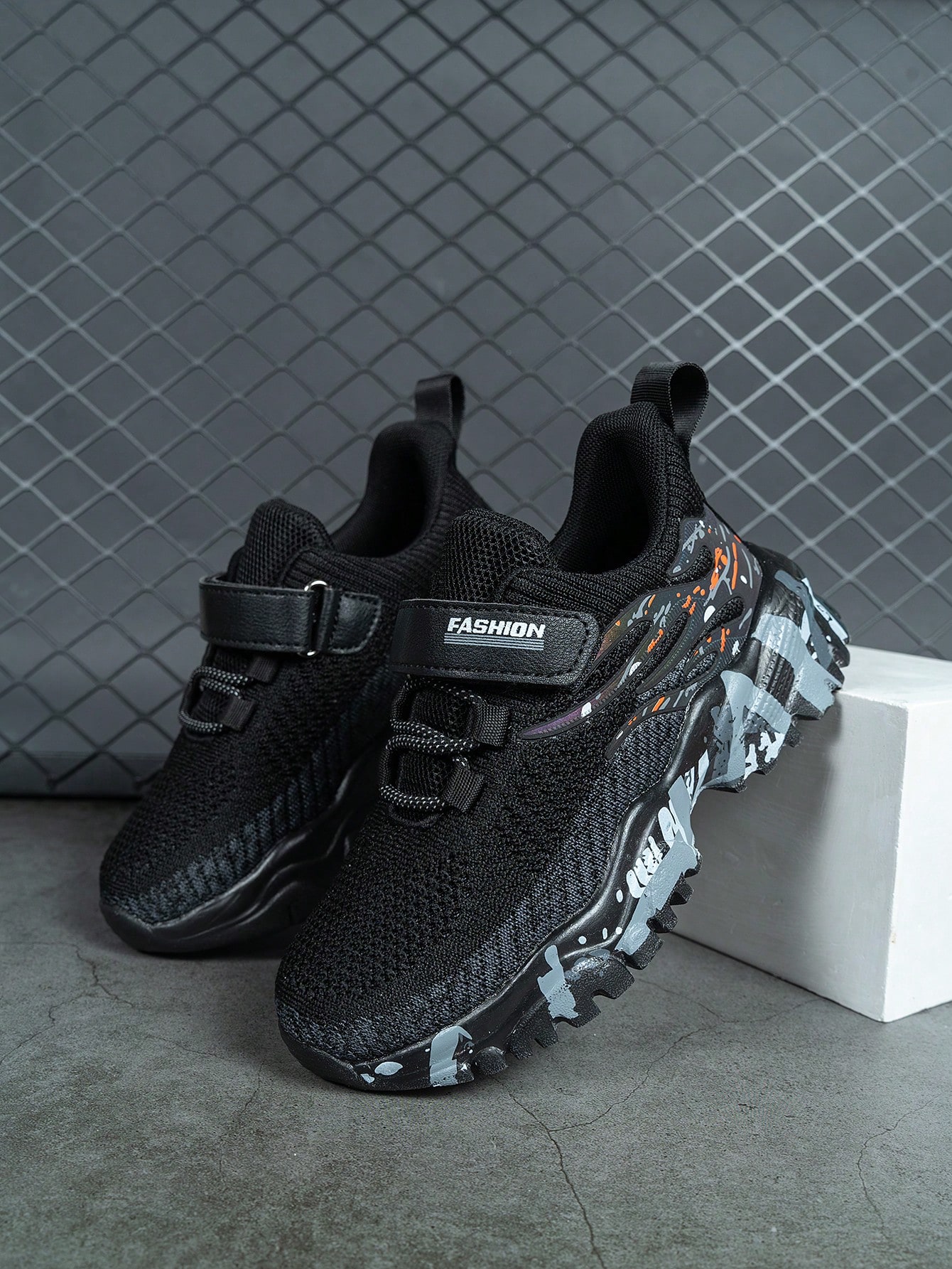 أحذية رياضية سهلة الارتداء للأطفال، تصميم ألوان متباينة، شريط مطاطي، أصابع مقاومة للخدش، نعل مانع لل