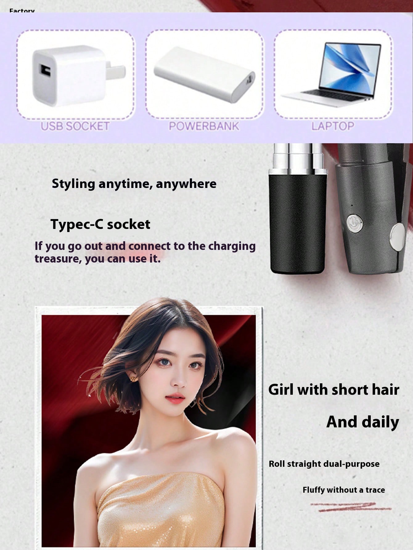 مصفف شعر صغير يعمل بالطاقة من USB 2 في 1، أداة تصفيف الشعر المحمولة للاستخدام في السكن الجامعي (غير