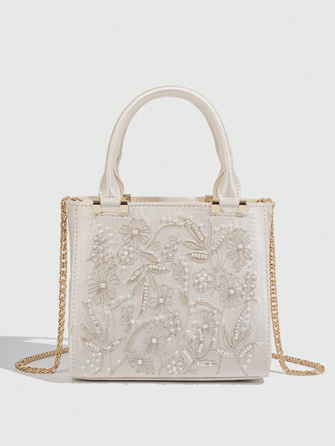 حقيبة يد صغيرة مطرزة باللؤلؤ الأبيض القمري، حقيبة مسائية مزخرفة بنقوش زهرية فاخرة
