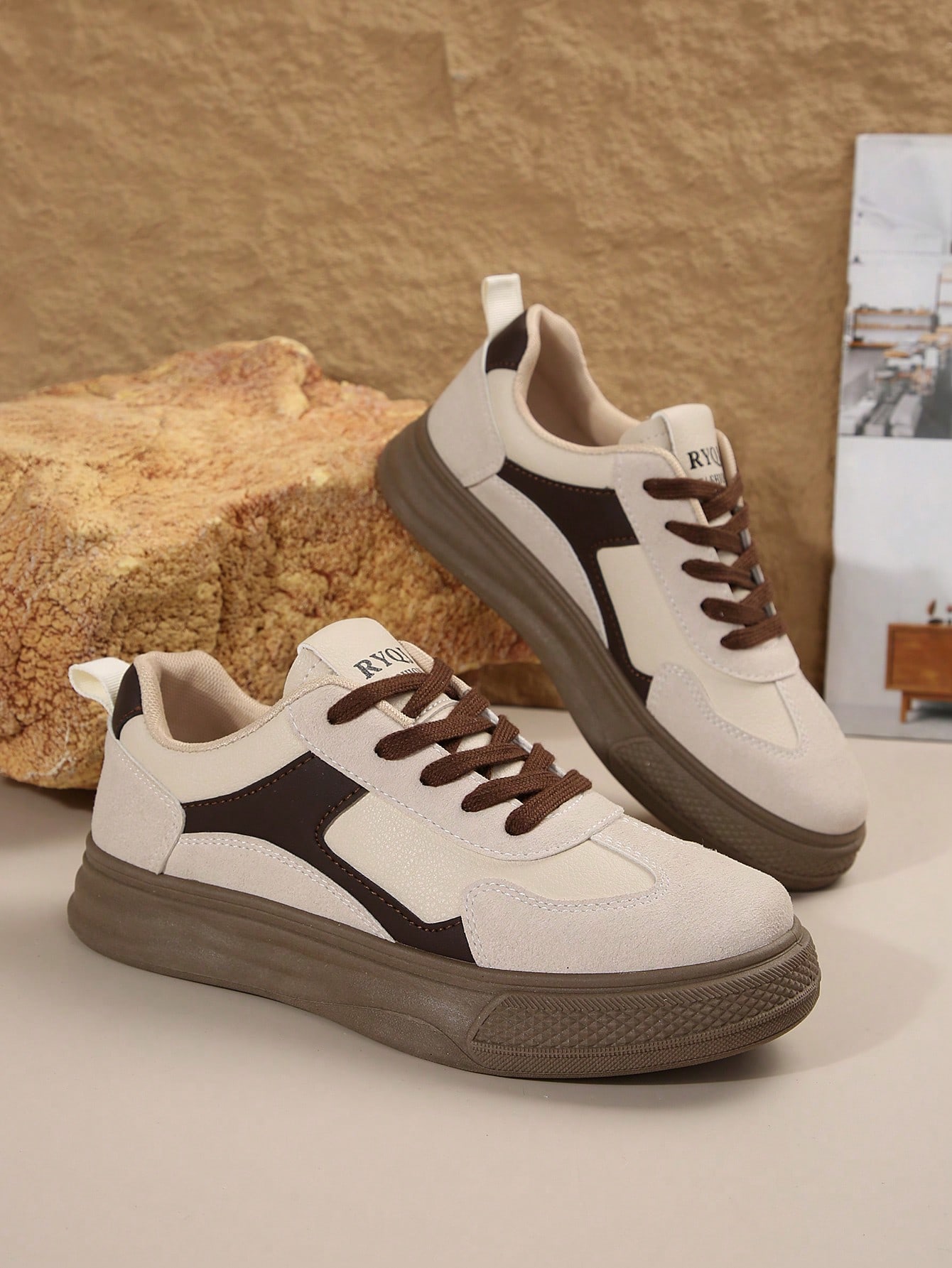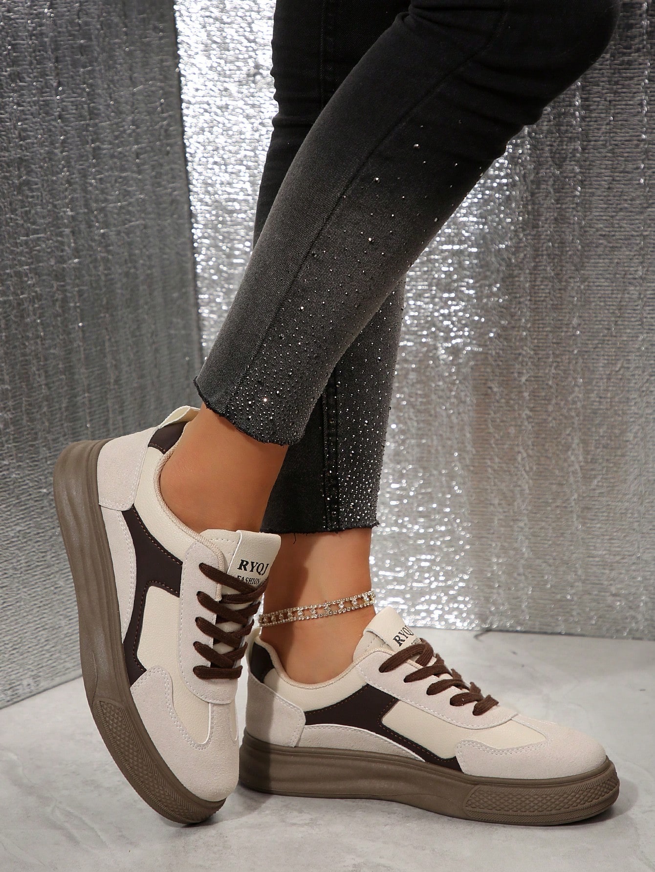 حذاء رياضي كاجوال للنساء بنعل سميك وأربطة، للربيع والخريف