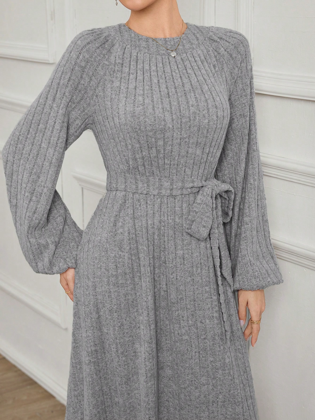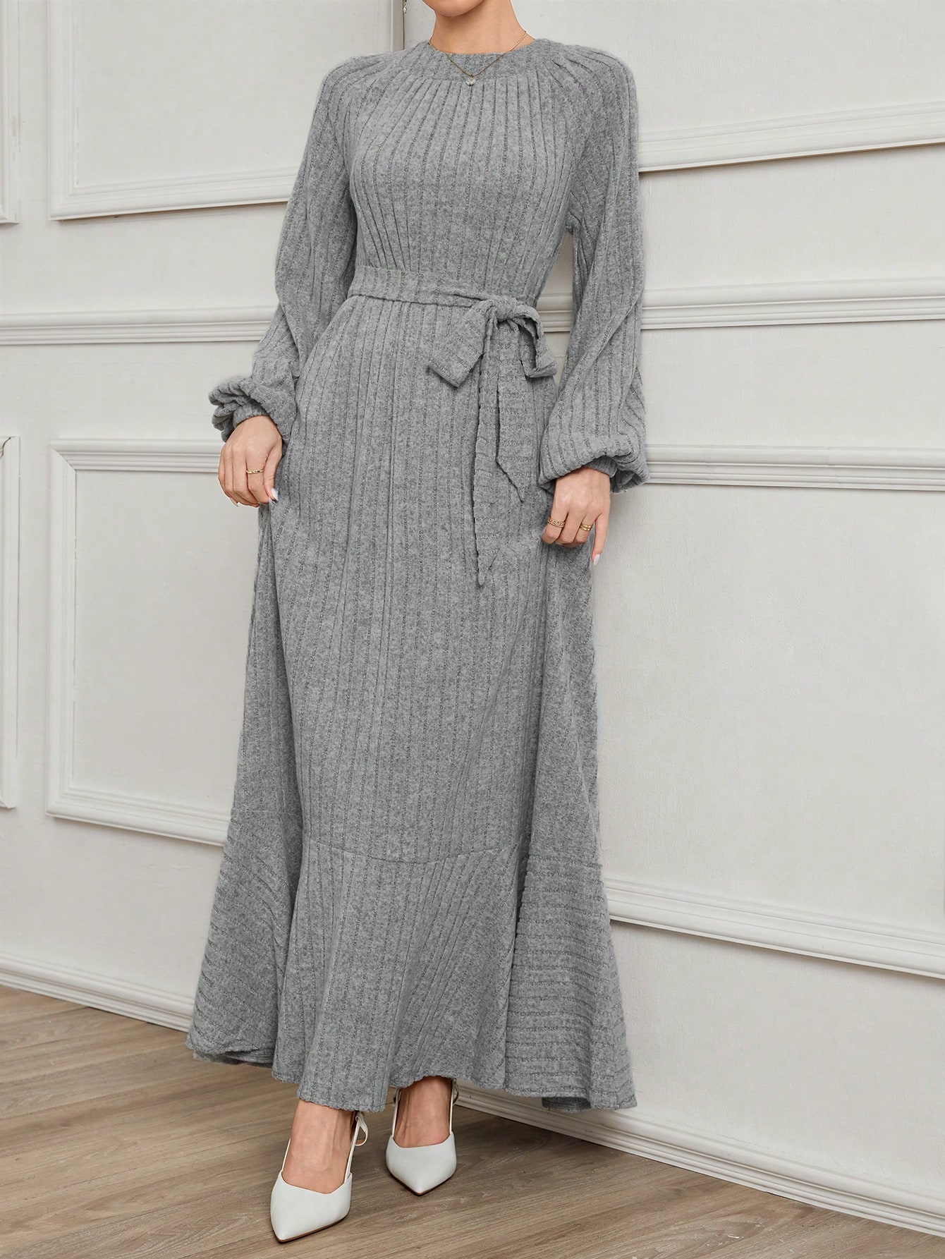 Mulvari فستان محبوك ذو رقبة طاقم طويل جداً للنساء، أنيق للارتداء اليومي، للخريف/الشتاء، قطعة واحدة