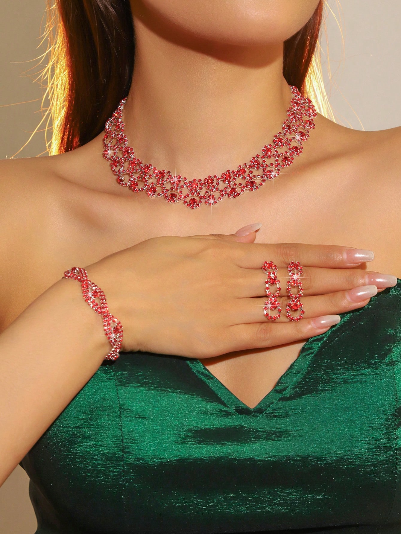 مجموعة مكونة من 3 قطع - عقد مجوهرات مزخرف بالراين ، قلادة أقراط وسوار مناسبة للنساء للاستخدام اليومي
