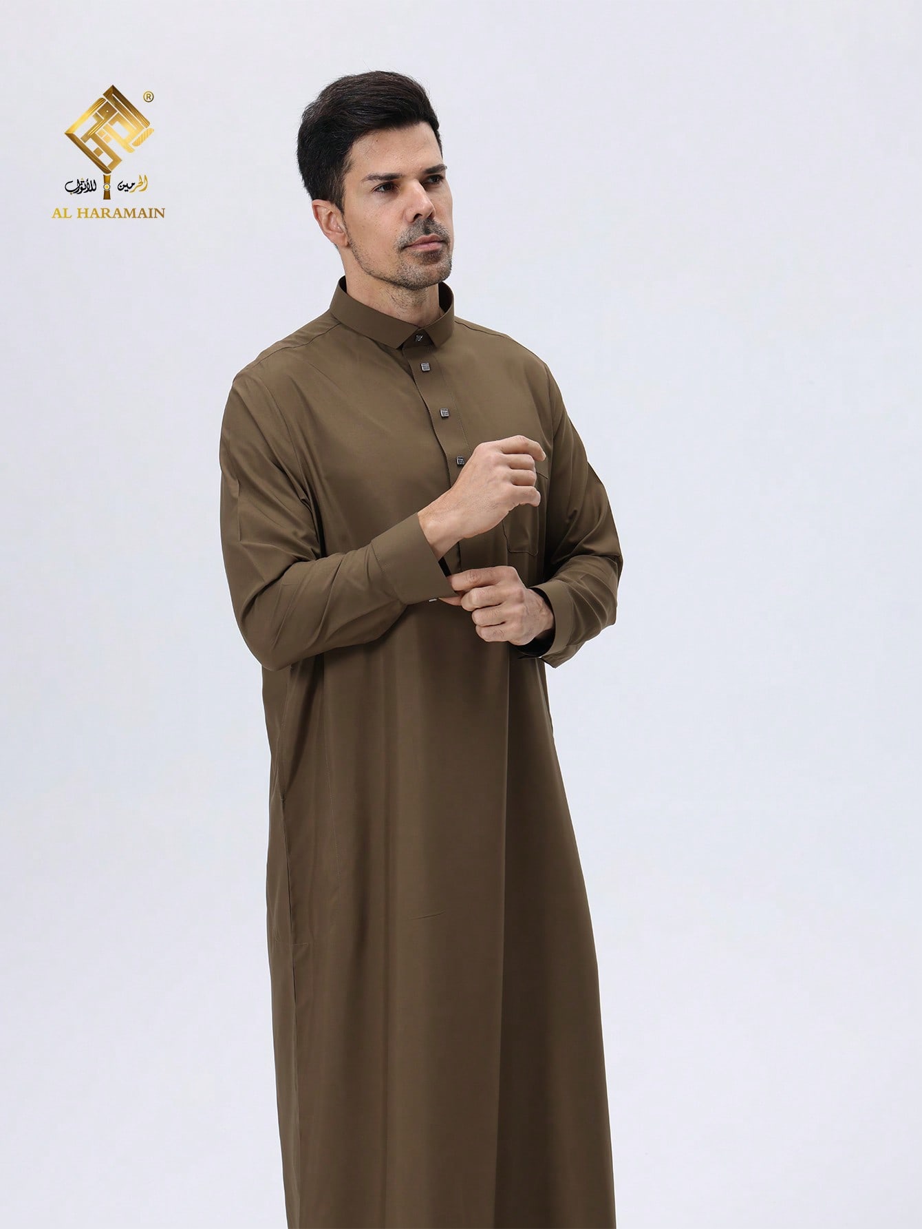 AL HARAMAIN ثوب قطري لعام 2025 أحدث موديل عالي الجودة للرجال، قماش ناعم لا يتكلس، تصميم أكمام طويلة